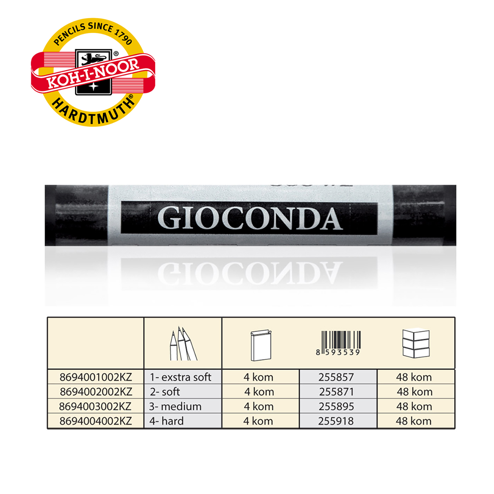 Set od 4 veštačka uglja prečnika 12 mm i dužine 75 mm. Upakovano je 4 komada jedne gradacije a proizvodi se u četiri gradacije: 1. 2. 3. 4. Uglavnom se koriste za veće površine. Oni su ekvivalentna zamena za prirodni ugalj. Pogodni su za umetničko i hobi slikarstvo. Dobijeni crtež treba stabilizovati fiksativom.