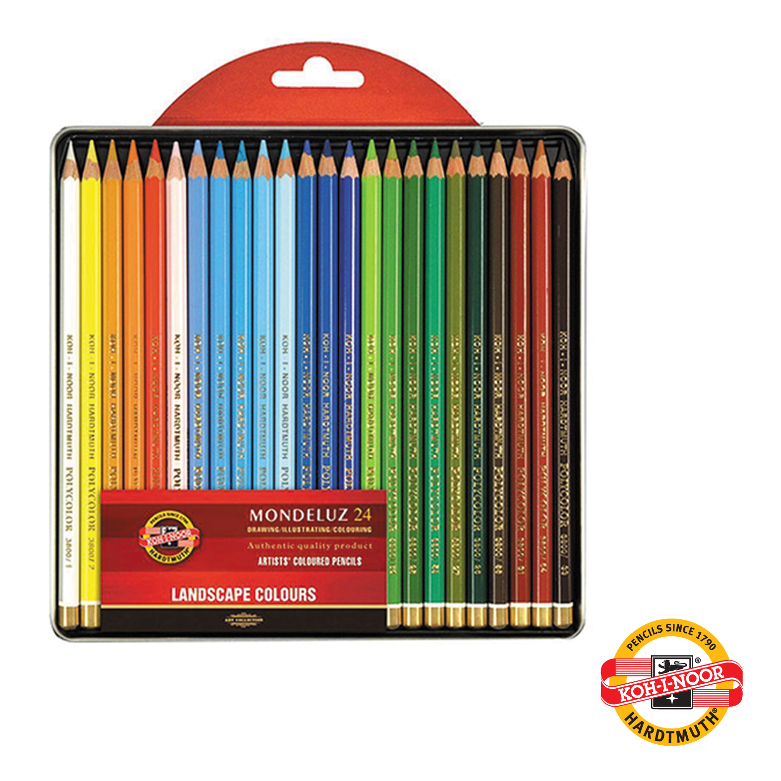 Set od 24 vodene bojice - LANDSCAPE - u metalnoj kutiji. Bojice su šestougaone precnika 7 mm sa visoko kvalitetnim pigmentnim jezgrom prečnika 3.8 mm. Ostavljaju bogat trag boje sa moguc´nošc´u dalje izmene crteža korišćenjem četkice ili sunđerom. Pogodne su za umetničko i hobi crtanje.