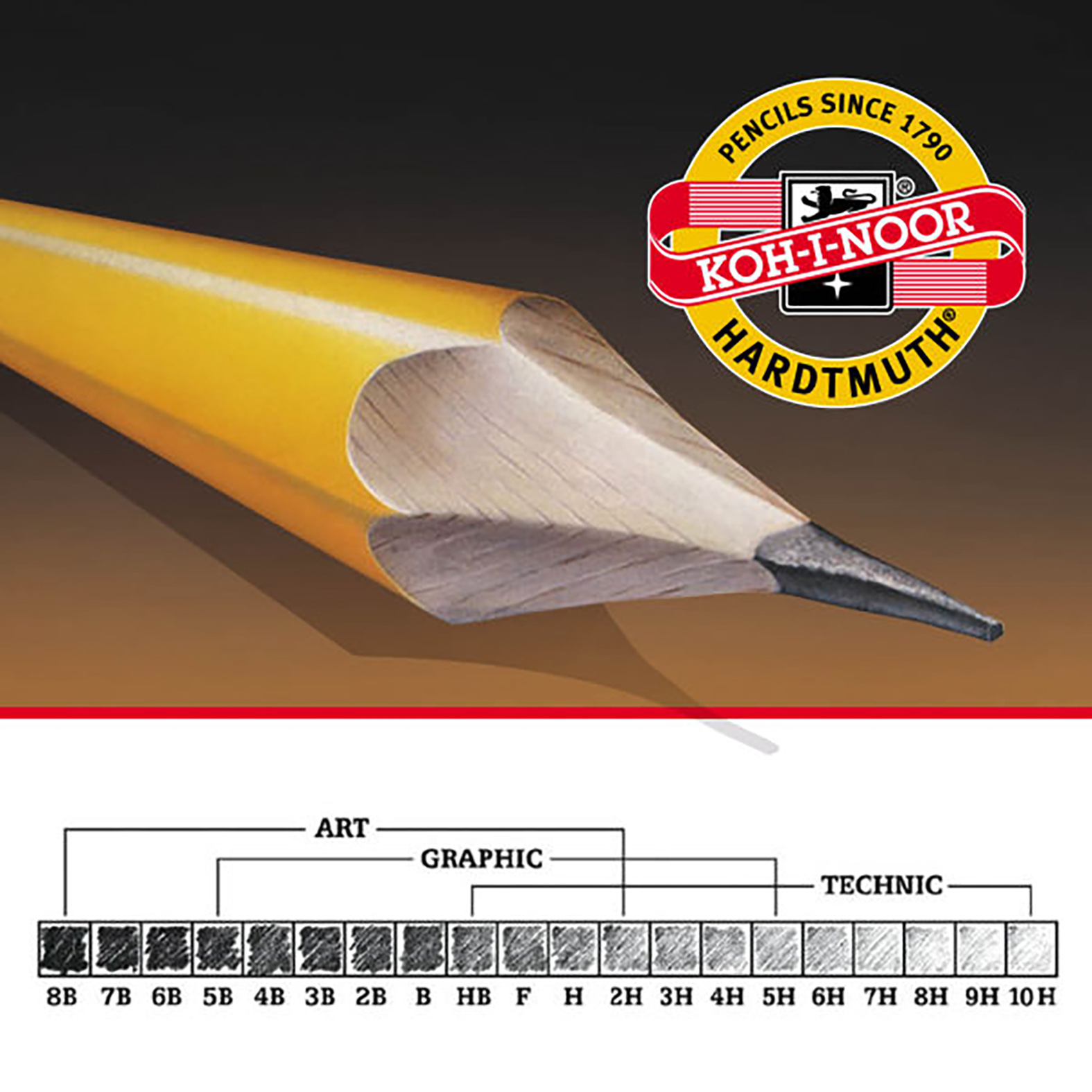 Tradicionalne žute grafitne olovke od kvalitetnog drveta. 1502 - mekih gradacija od 8b do 2H. Tvrdoća i mekoća se jasno prate u odnosu na samu primenu. Olovke su idealne za tehničare. grafičare i umetnike.