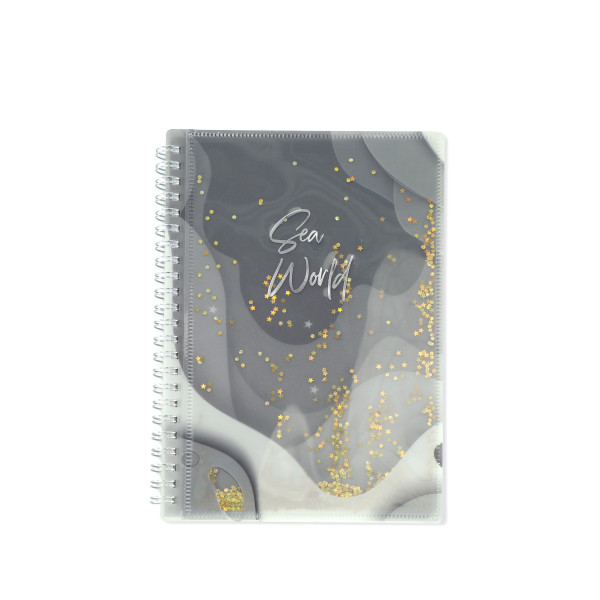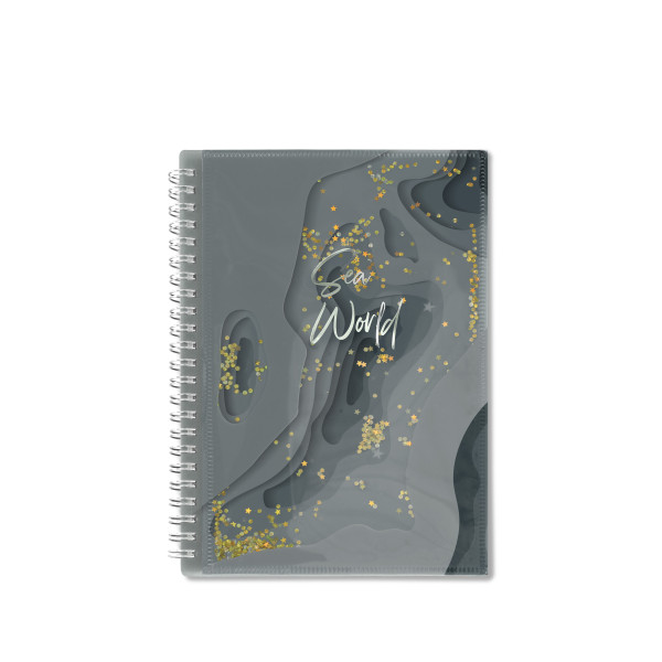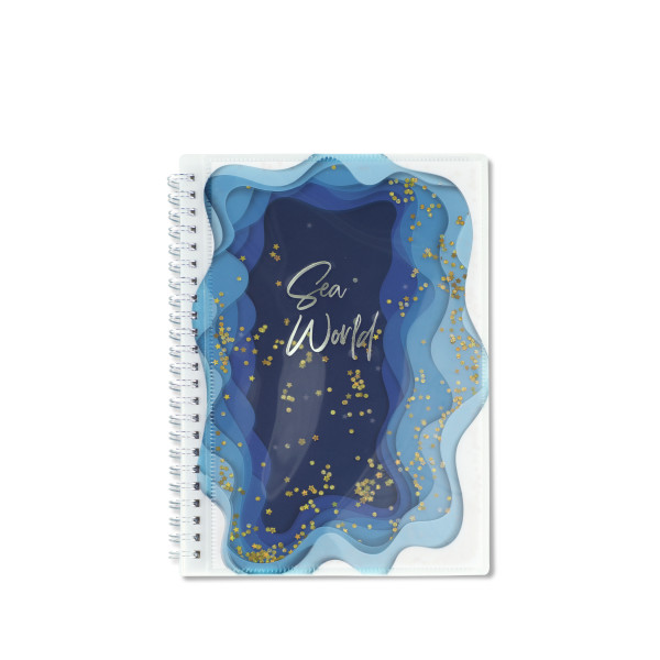 Opis: KOLEKCIJA SEA WORLD Sveska sa spiralom A5 14.5x20.8cm PVC korica . 80 listova u bloku kvalitetnog 80gsm papira . Dostupno u 4 dezena