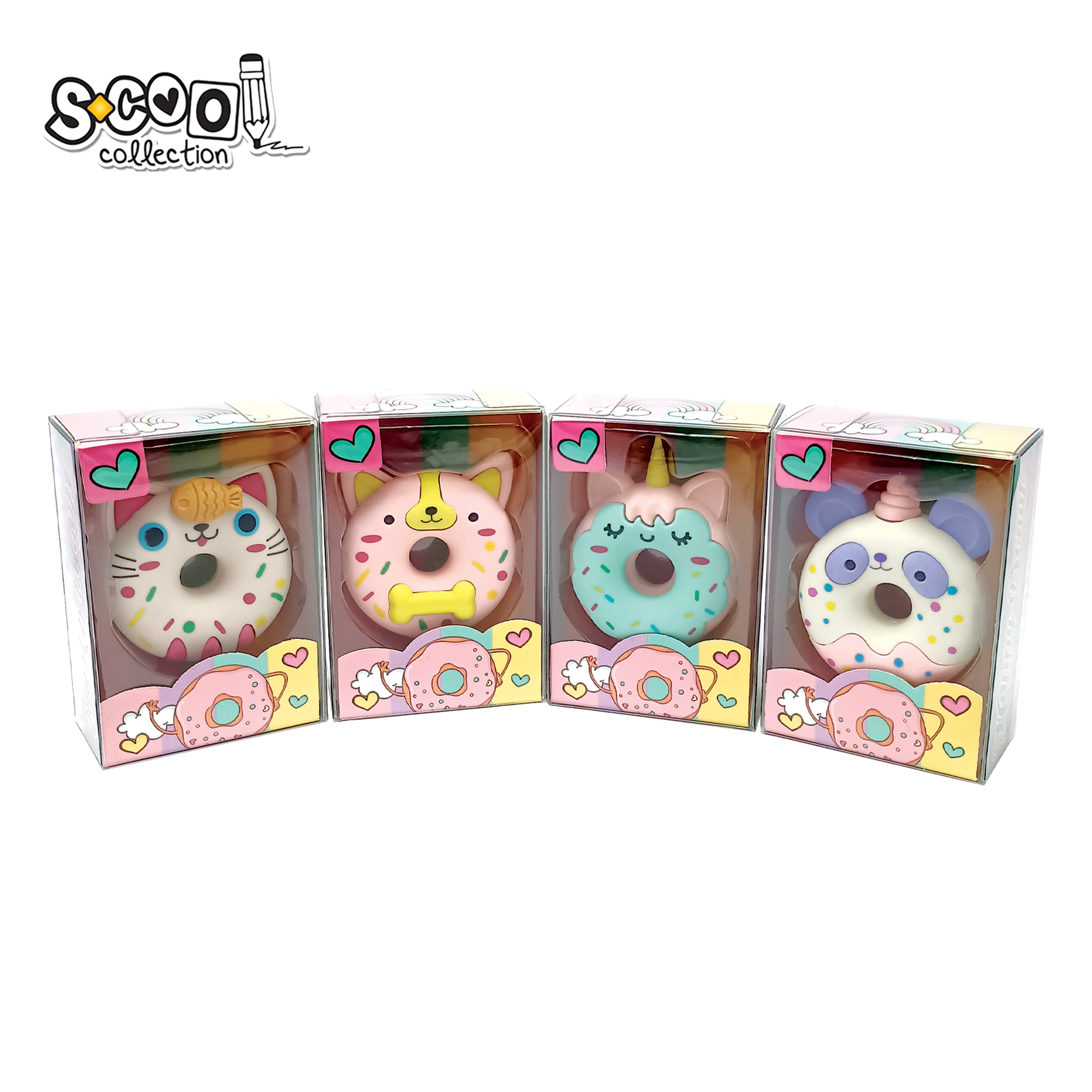 GUMICA ZA BRISANJE HAPPY DONUT 1/12 kom - PVC free / Non - Toxic - Zaštita PVC slojem -4 Razlicita dizajna - Jarke boje i zanimljiv dizajn