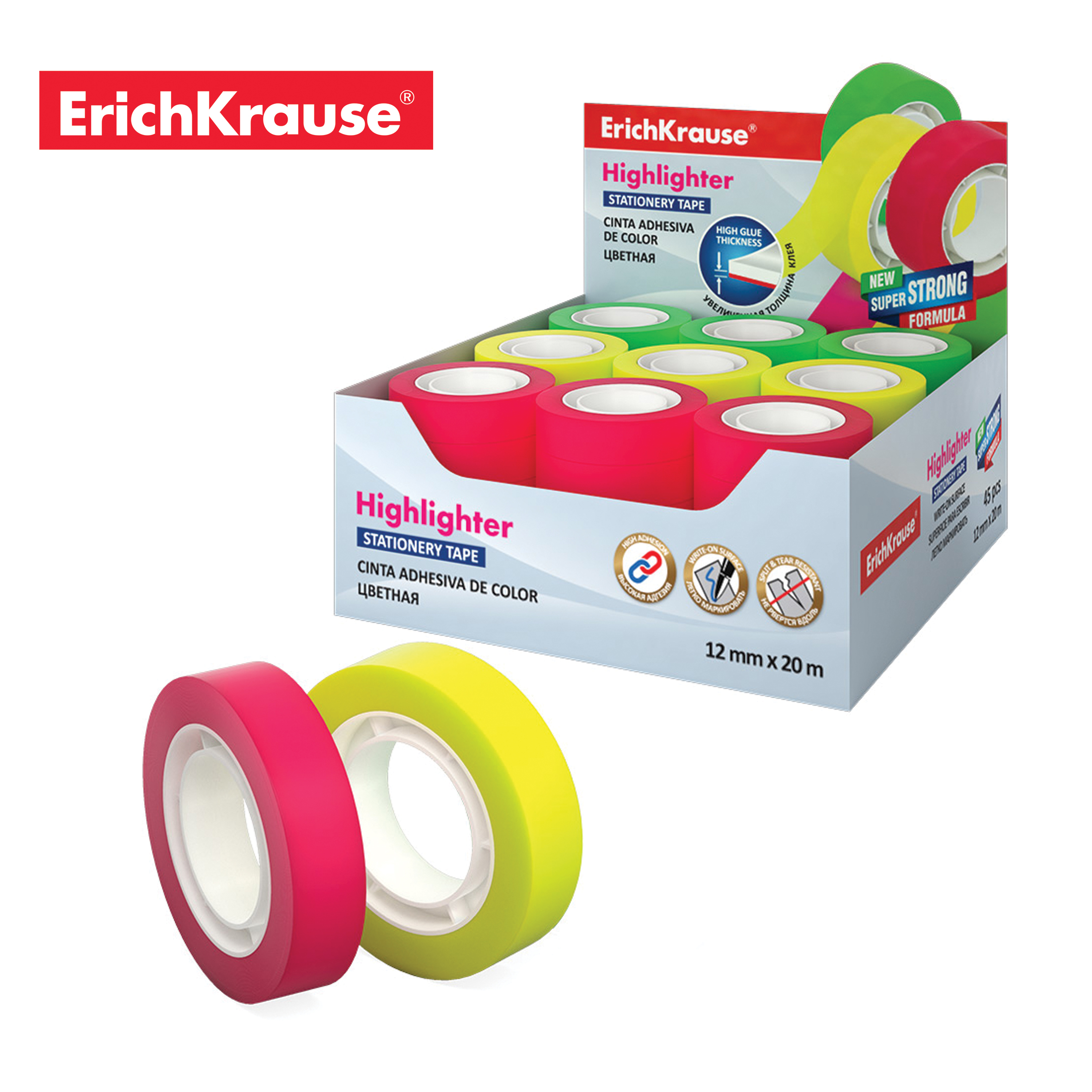 SKOC TRAKA HIGHLIGHTER 12MM*20MM transparentna skoc traka. u tri neon boje. zelena. zuta. pink. 12*20MM DISPLAY 45KOM Selotejp za kancelarijsku upotrebu. Deblji sloj lepka. Mat površina protiv odsjaja pogodna za pisanje. Pogodan za obeležavanje. beleške i isticanje. Otporan na kidanje u dužini. Visoka lepljivost.