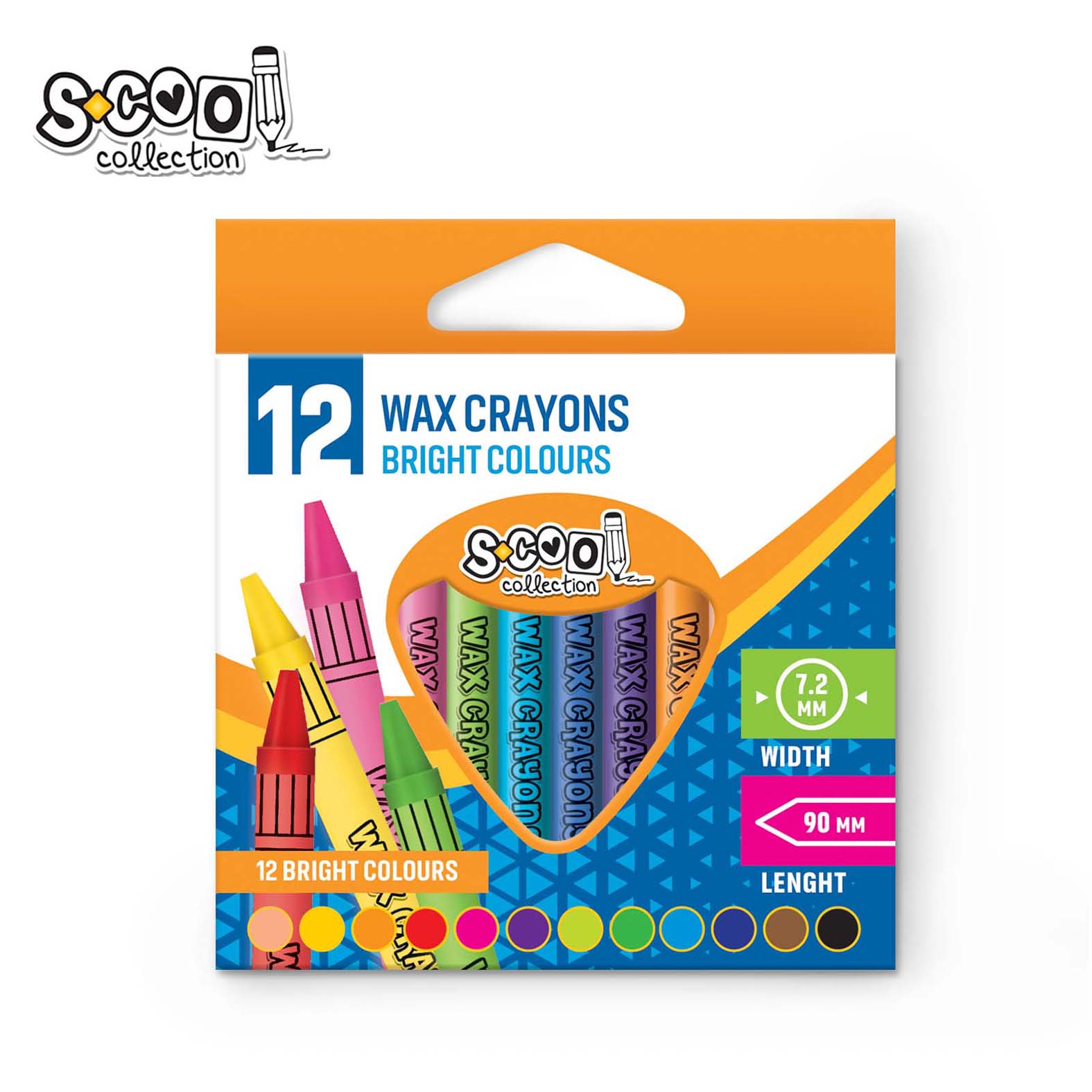OKRUGLE / VODOOTPORNE - 12 intenzivnih boja - Sa papirnom zaštitom - Dimenzija preseka boje: 7.2 mm - Dužina: 90 mm - Non - Toxic